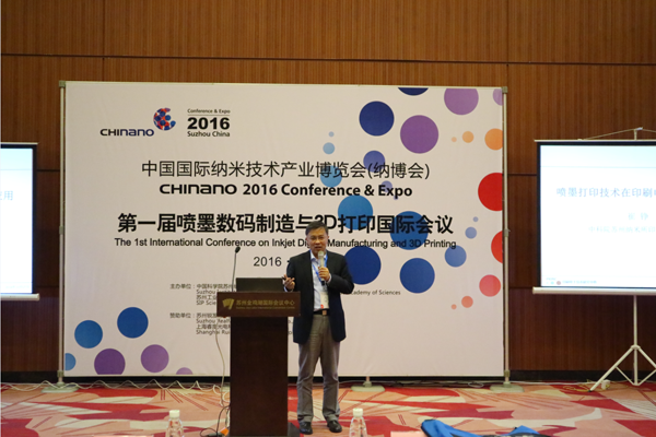 中科院化学所副研究员张兴业博士提出数字电路印刷使用的纳米银导电墨水,并探讨墨水与工业打印头之间的关系。