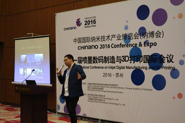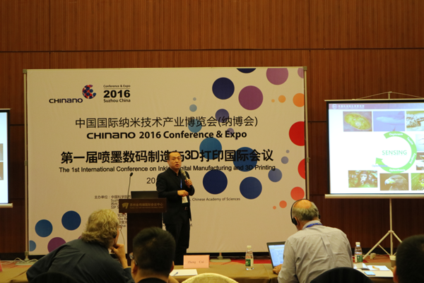 中科院化学所副研究员张兴业博士提出数字电路印刷使用的纳米银导电墨水,并探讨墨水与工业打印头之间的关系。