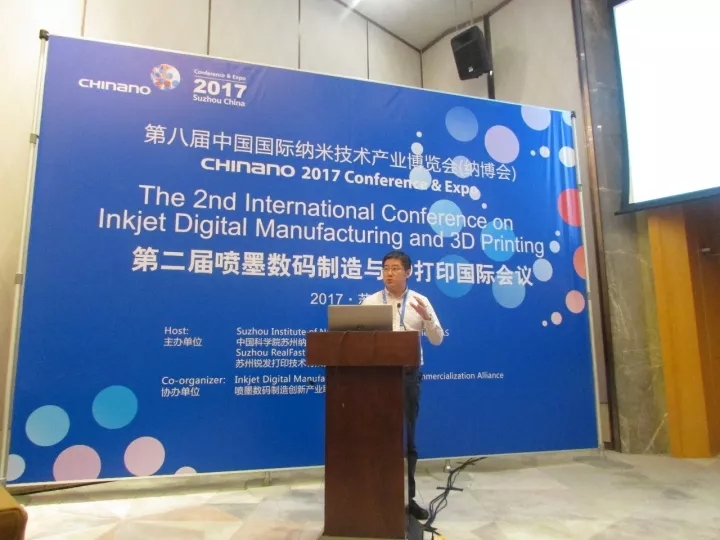 大会主席中科院苏州纳米所研究员、苏州锐发打印技术有限公司创始人、董事长谢永林博士首先阐述了喷墨数字制造的原理、现状以及应用情况,详细介绍了联合开放平台的建设情况和发展前景。最后向大家介绍了3D打印的最近进展,特别是展示了采用自主研发的设备和打印技术生产制造的金属、砂型以及石膏粉的应用实例。