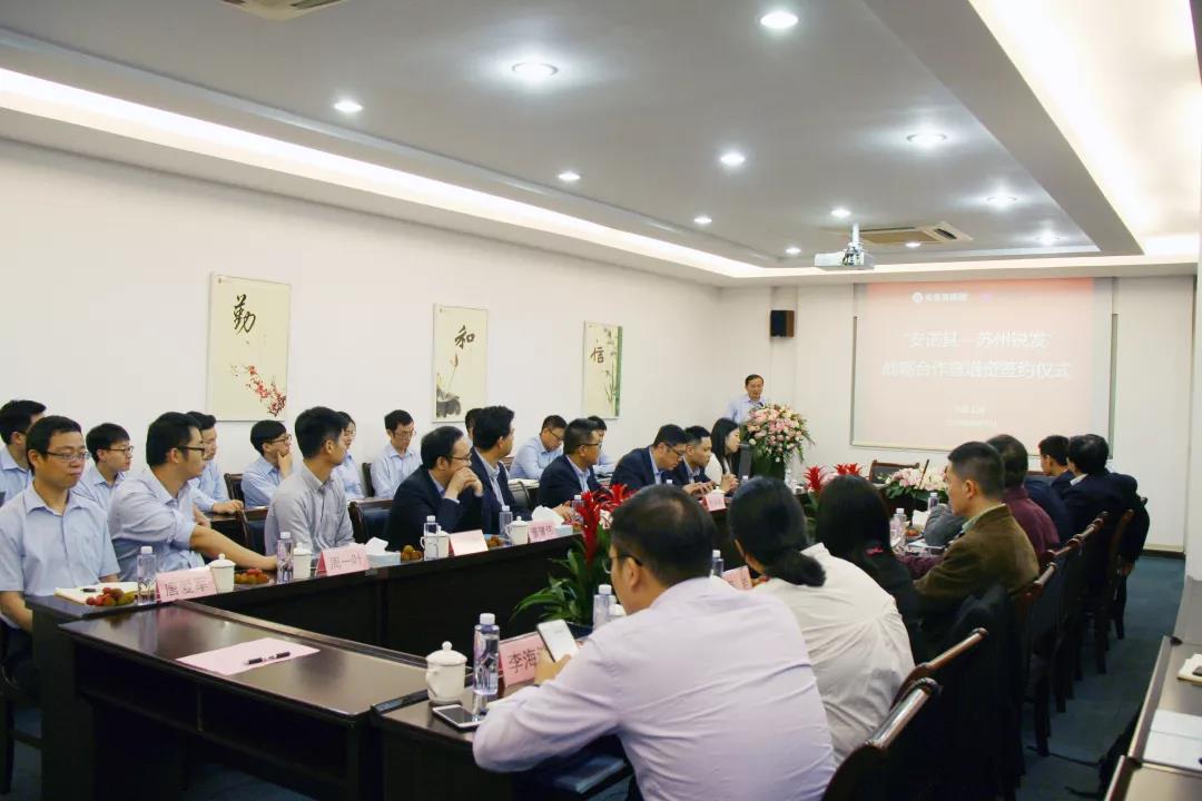 朱新远副院长在讲话中重点强调此次战略合作的重要意义,根据上海交通大学与安诺其的战略合作,交大团队参与该项目部分技术研发工作,从市场需求出发,与安诺其、锐发围绕部分技术联合攻关,实现自主创新和产学研合作的落地。