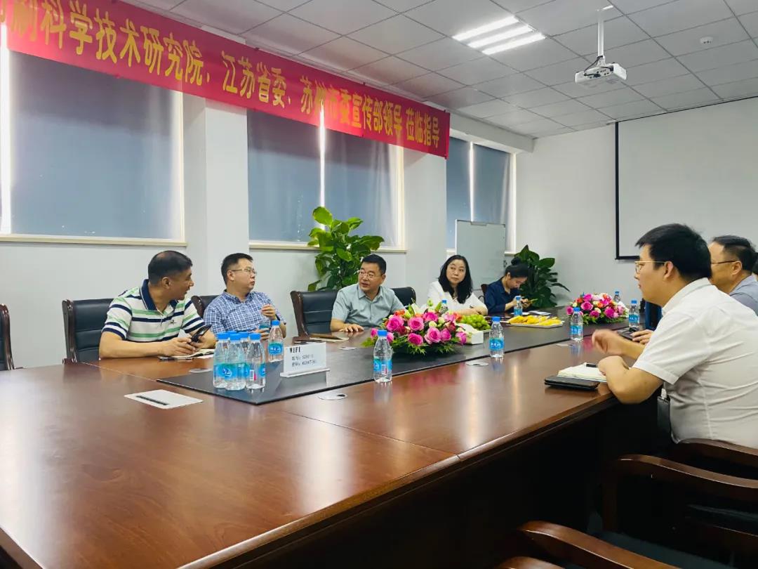 江苏省委宣传部印刷发行处副处长王毅,苏州市委宣传部印刷发行处副处长刘至生等相关领导参加调研。苏州锐发打印总经理谢永林等接待一行,陪同参观了生产车间、展区、实验室相关区域,并举行交流座谈会。