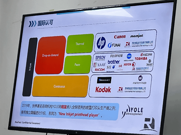 2018年,苏州锐发打印技术有限公司发布了自主知识产权的工业级热发泡喷墨打印头,其打印速度可与连续式的高速比肩,喷头成本又远低于进口同类型产品,自此,国产喷墨打印头市场不仅实现了从0到1的突破,还达到了国际领先水平,2019 年,国际半导体、光学及电子行业广受认可的权威研究机构Yole Group将锐发纳入全球领先打印喷头厂商。
