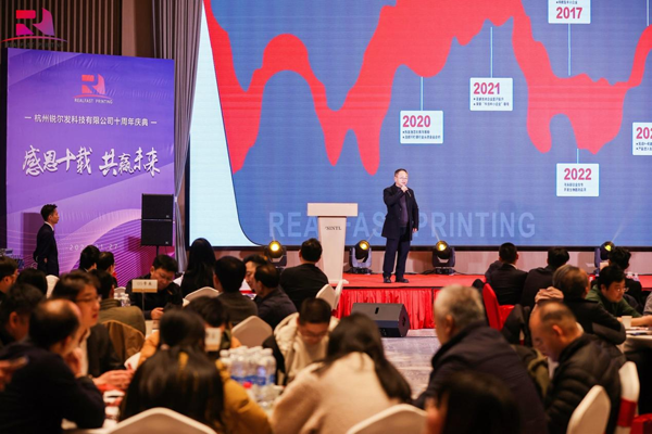 我们还特别邀请到了来自不同领域的杰出人物,他们分别是锐尔发股东-兰璞然基金投资总监朱克学先生、锐尔发股东-杭实探针基金创始人诸葛忠先生、北大商会苏州分会秘书长邵宏伟先生来分享他们的见解和经验。三位特邀嘉宾分享了自己初遇谢博士及锐尔发的感想,表示十分佩服谢博士,他以科学家的身份,投入到企业当中,以十分的热爱来做喷墨打印事业,并能够将研发成果转化为市场需求,为中国喷墨的发展做出了巨大的贡献,使国产喷墨打印实现了从0到1的突破,并祝福锐尔发未来更上一层楼!