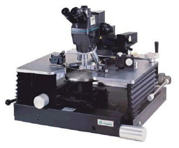 探针台用于对我所自行研制的基于碳材料的纳米半导体器件进行辅助分析。例如生物、化学、压力、光学传感器的电流-电压信号测试、三极管特性曲线测量等,探针台是半导体参数测试必备和重要的组成部分。尤其是对于纳米器件而言,对探针台的质量和精度要求更加苛刻,比如显微镜的放大倍数至少得100倍以上、探针移动精度在微米级别等。它是用数据线与测试台连接,共同来完成对器件性能的检测,探针台主要包括显微镜,样品载物台,定位针座,测试仪连接电缆和接口,屏蔽箱等。工作时,通过针座将探针直接接触电极表面,将电信号传给测试仪进行测试,其主要功能是电信号的采集、输入、输出,是具有独立功能的电气设备。